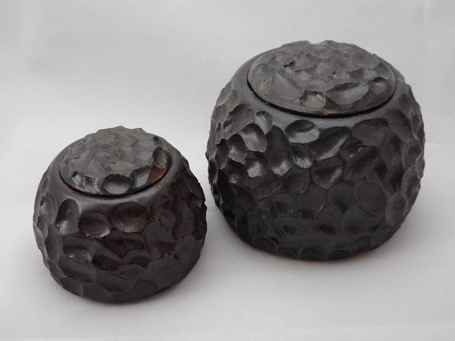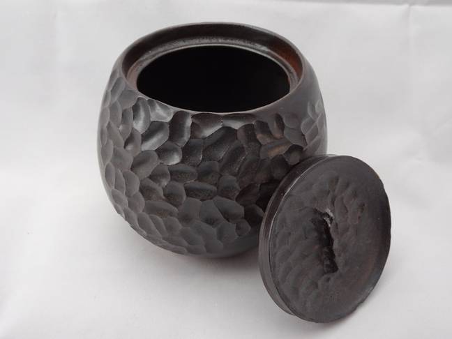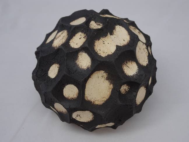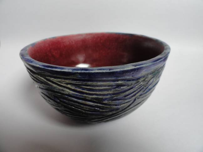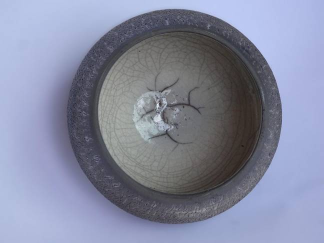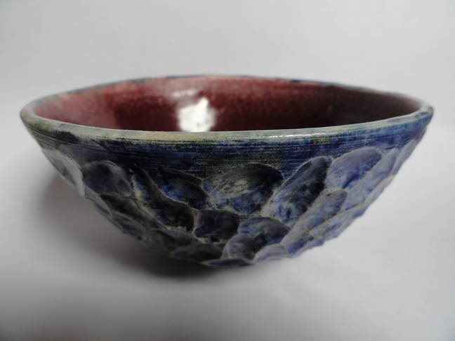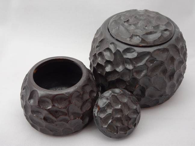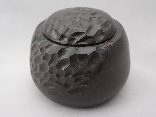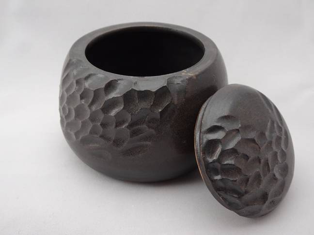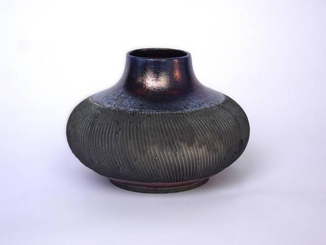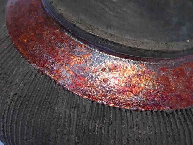 Het oppervlak wordt zorgvuldig bewerkt totdat de oorspronkelijke gladheid van de gedraaide klei niet meer herkenbaar is.