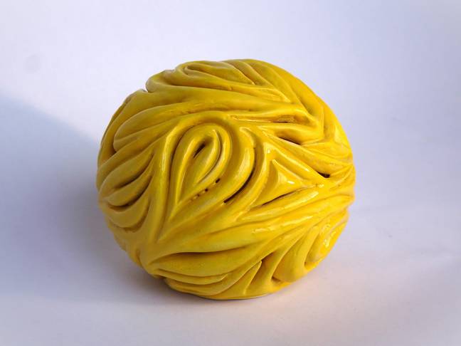 Mijn proces begint aan de draaischijf, waar ik gesloten bollen vorm, grote semi-sferische kommen, of bolvormige vazen met taps toelopende hals, afhankelijk van de basis die ik nodig heb om mijn idee uit te werken.