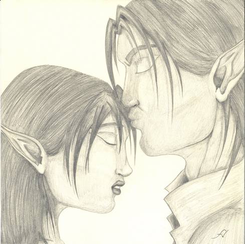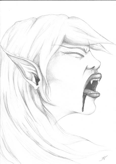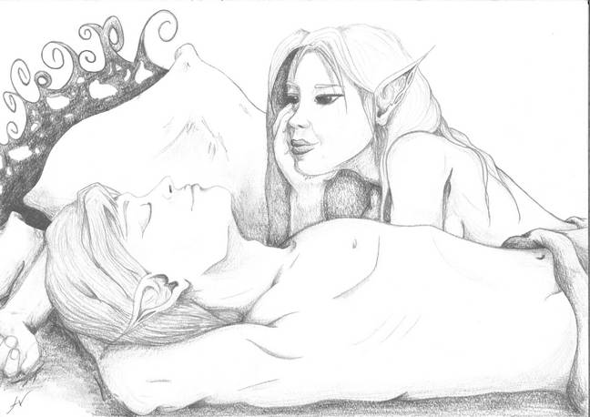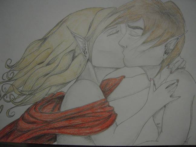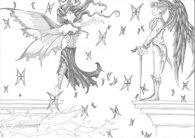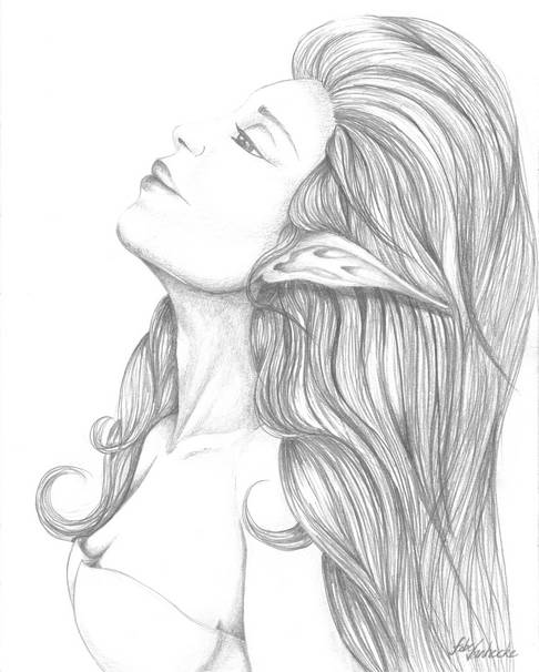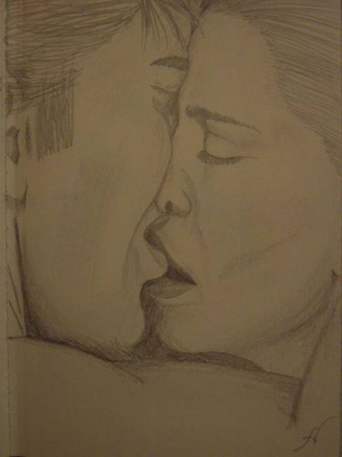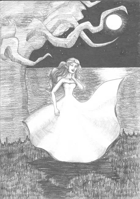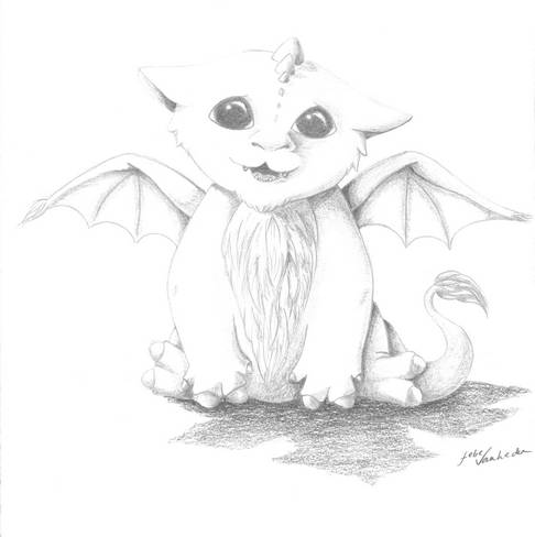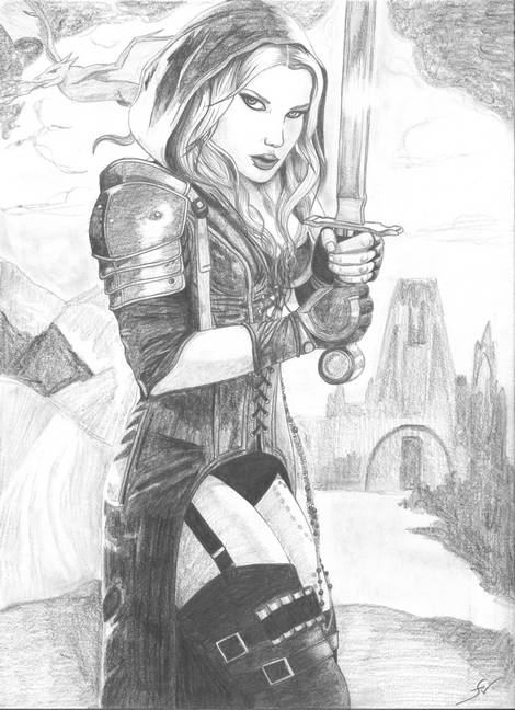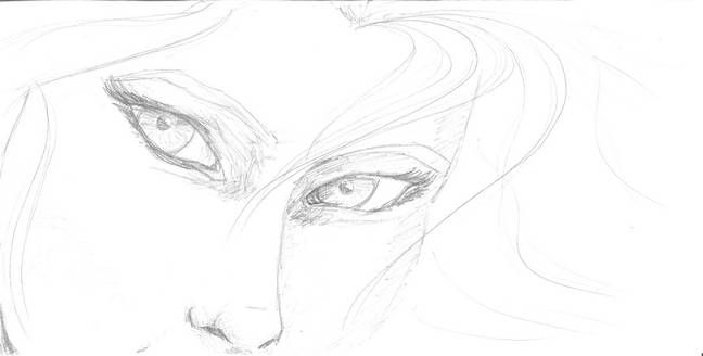 Tekening op grijs schetspapier met kleur- en schetspotloden 32x42