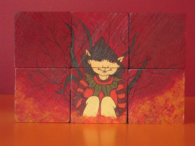 Acryl op houten blokjes om te puzzelen 10x15 1 blokje 5x5