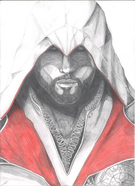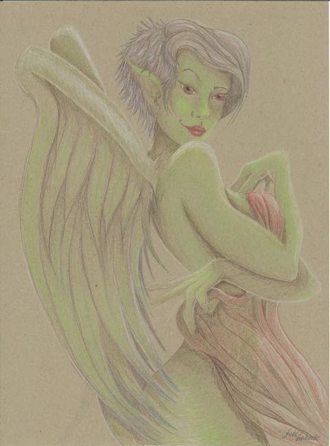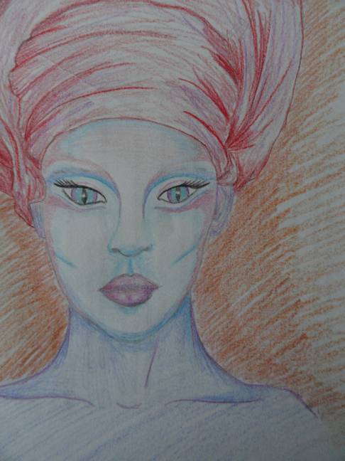 Tekening op papier afgewerkt in kleurpotlood 21x29